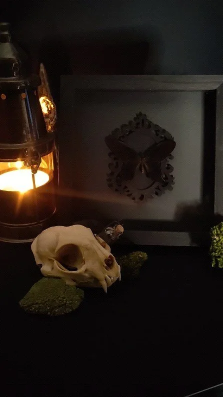 Each display is carefully hand dressed to best fit the specimen within. Each piece is designed with the intention of creating a well-rounded composition that keeps shape, color scheme, and atmosphere in mind.